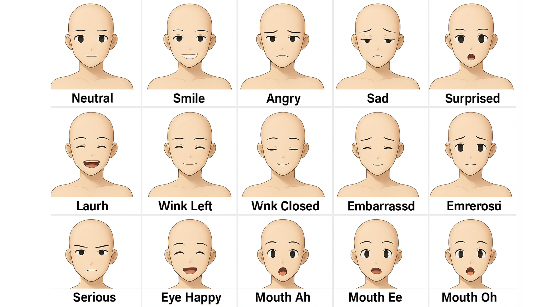 • Basic Expressions (5+) – Happy, Sad, Neutral, Shocked, Angry, Smiling